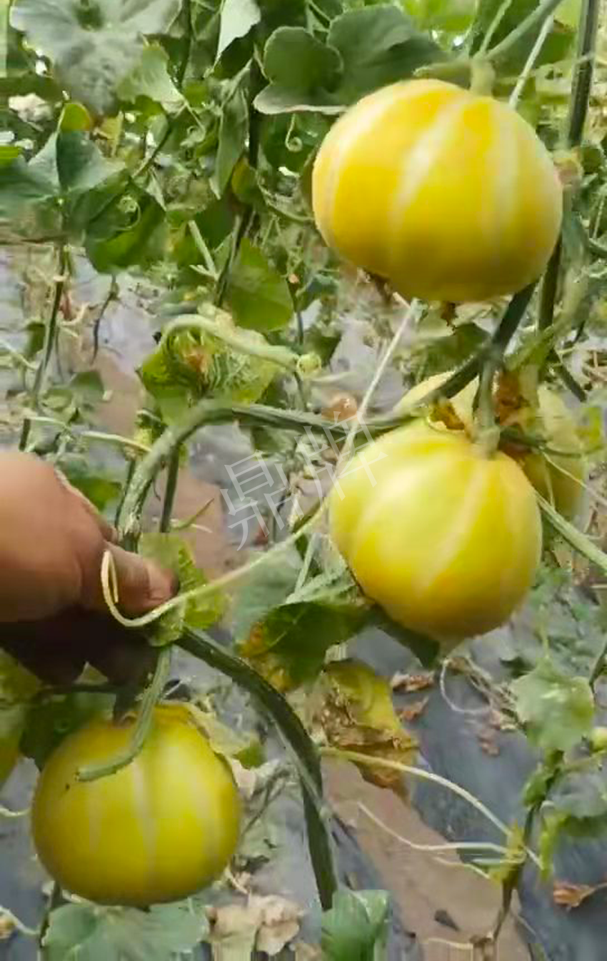 去年,試種了一畝地,第一次就喜獲成功。在我們新疆市場(chǎng)非常受歡迎,果型漂亮,顏色金黃金黃的。我還發(fā)現(xiàn)“金帝”有個(gè)特點(diǎn),就是瓜熟透了都不裂瓜。我從4月15日一直賣到7月20日才結(jié)束。