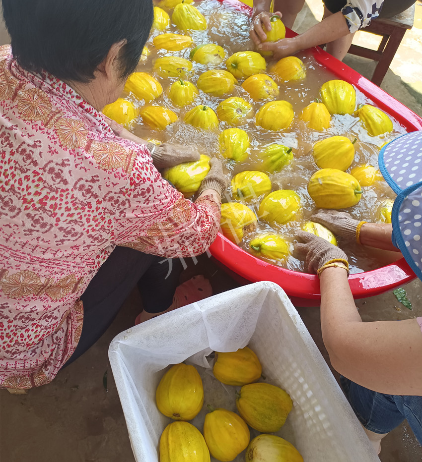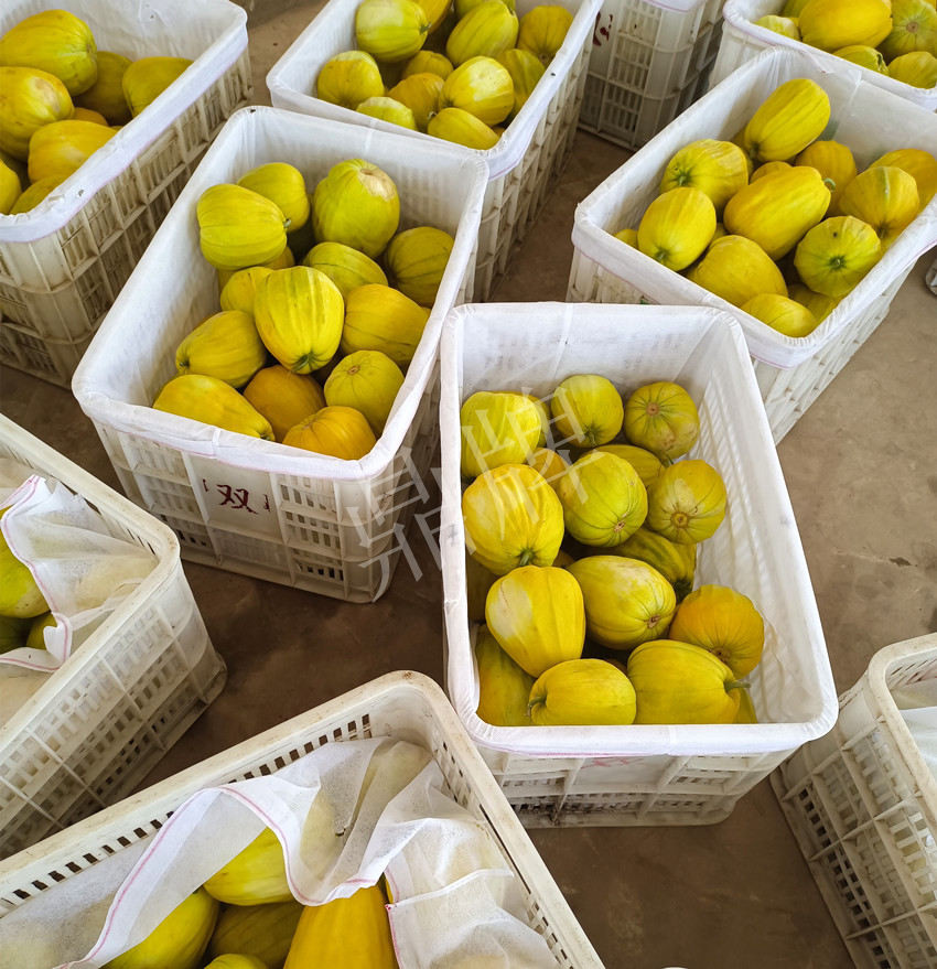 于是,我在今年春季種上了“秋甜1號”,今年共種了100多畝地的甜瓜,現在給大家分享的是抗高溫能力最強的“秋甜1號”。該品種果色金黃,果型端正,甜度高。到6月16日就大量上市了,此時批發(fā)價1.8元/斤。我們都是裝箱批發(fā),一箱箱的瓜真是漂亮,根本不愁銷路。