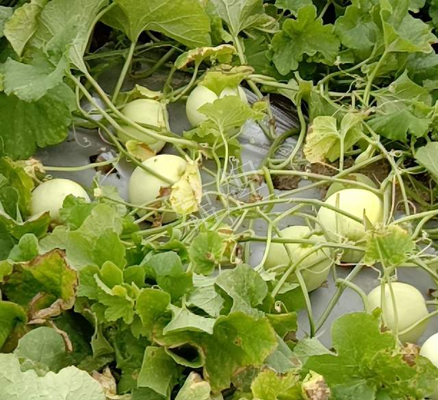 為了能夠分批供應(yīng)超市,“玉奶香2號(hào)”我是分4批種下去的。最早的一批是露地小拱棚,育苗是委托育苗工廠弄的,在4月1日就定植了。河南這邊雨水多,種“玉奶香2號(hào)”非常適合,因?yàn)樗目剐院?,特別耐雨水,種植中基本沒(méi)病害。今年下雨最多的時(shí)候,持續(xù)了一周,但是瓜的口感依舊香甜,不壞瓜,秧子也很好。