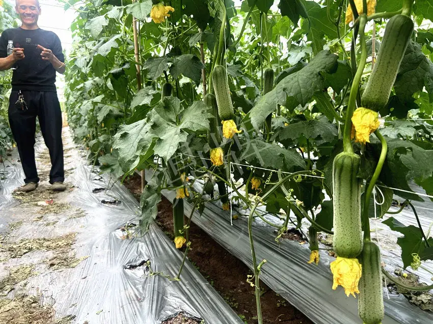 4月26日,四川峨眉山鼎牌經(jīng)銷商王俊英經(jīng)理發(fā)來了新推品種的照片,并來微信詳細說明了新品種“硬果親田”在當?shù)氐姆N植表現(xiàn)情況(該品種是鼎牌2023年下半年開始向全國首次推出的三倍體絲瓜,引種地區(qū)2024年開始種植)。