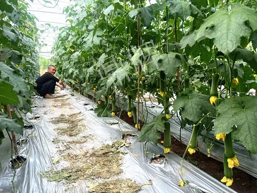 王經(jīng)理說,他到達種植基地時,瓜農在當天清晨已經(jīng)采收完瓜,這家農戶種了3畝地,頭幾批瓜就賣了4萬多元,在產地開始的批發(fā)價每斤5元。盡管是采收過后我拍的照片,整體感覺還是非常漂亮,因為這個品種的坐果能力超強,1株1天可坐果3~4個瓜。