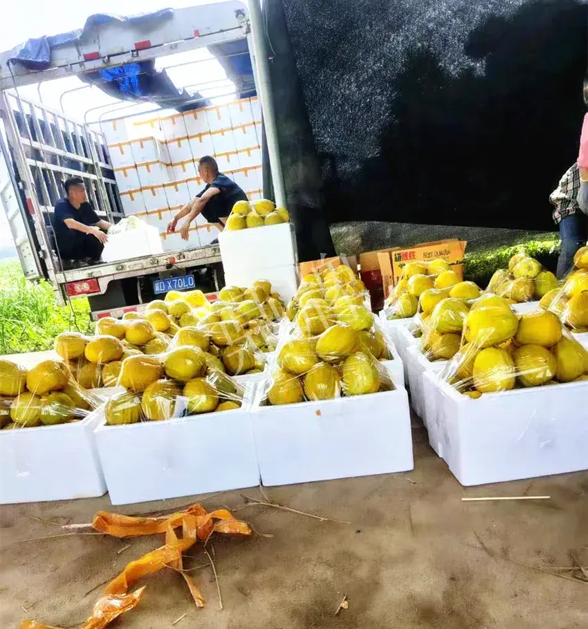 蔣老板有幾個合作社,都種上了“金美2號”甜瓜,其合作社種植的“金美2號”早在2019年的“賓陽融媒體中心”就報到過,題為“甜過初戀的賓陽甜瓜,上市啦!”。經(jīng)過這么多年的積累,甜瓜面積在當?shù)匾丫咭?guī)模,到了甜瓜成熟的季節(jié),全國各地的瓜商都來這里收購。