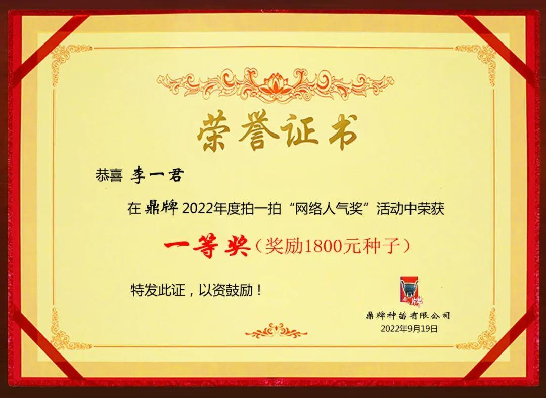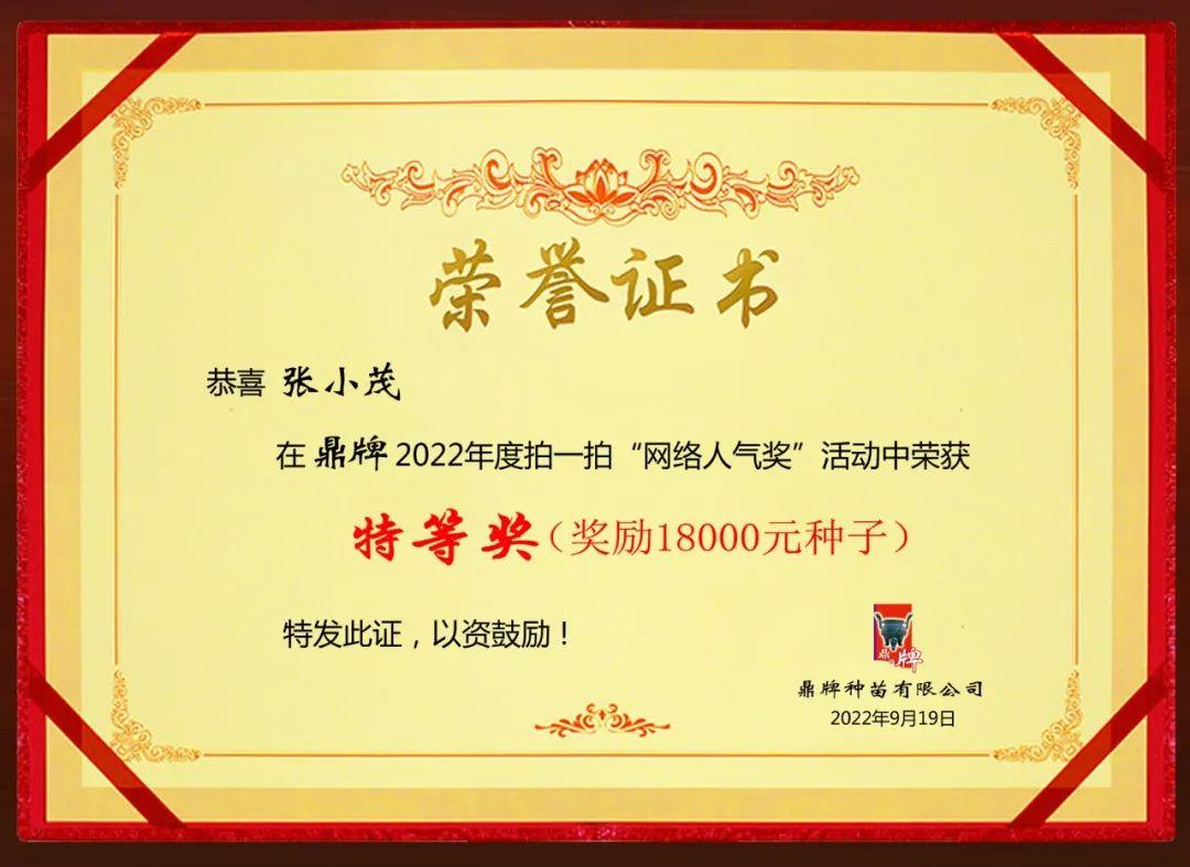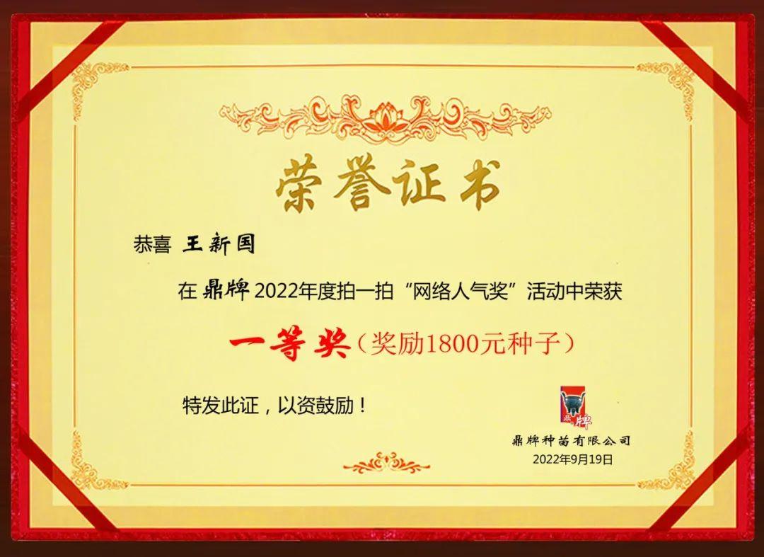 獎(jiǎng)品:1800元鼎牌種子/人