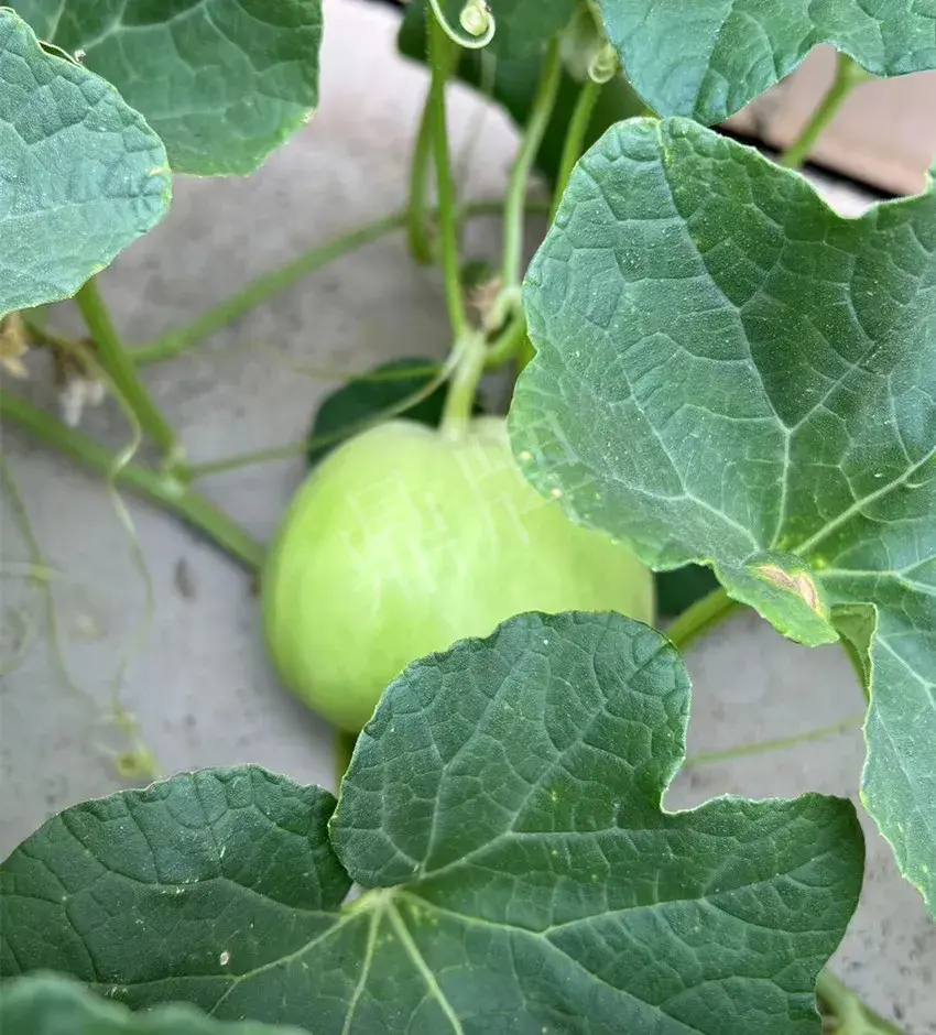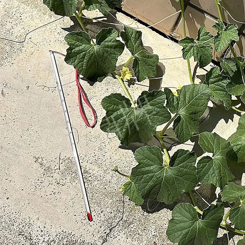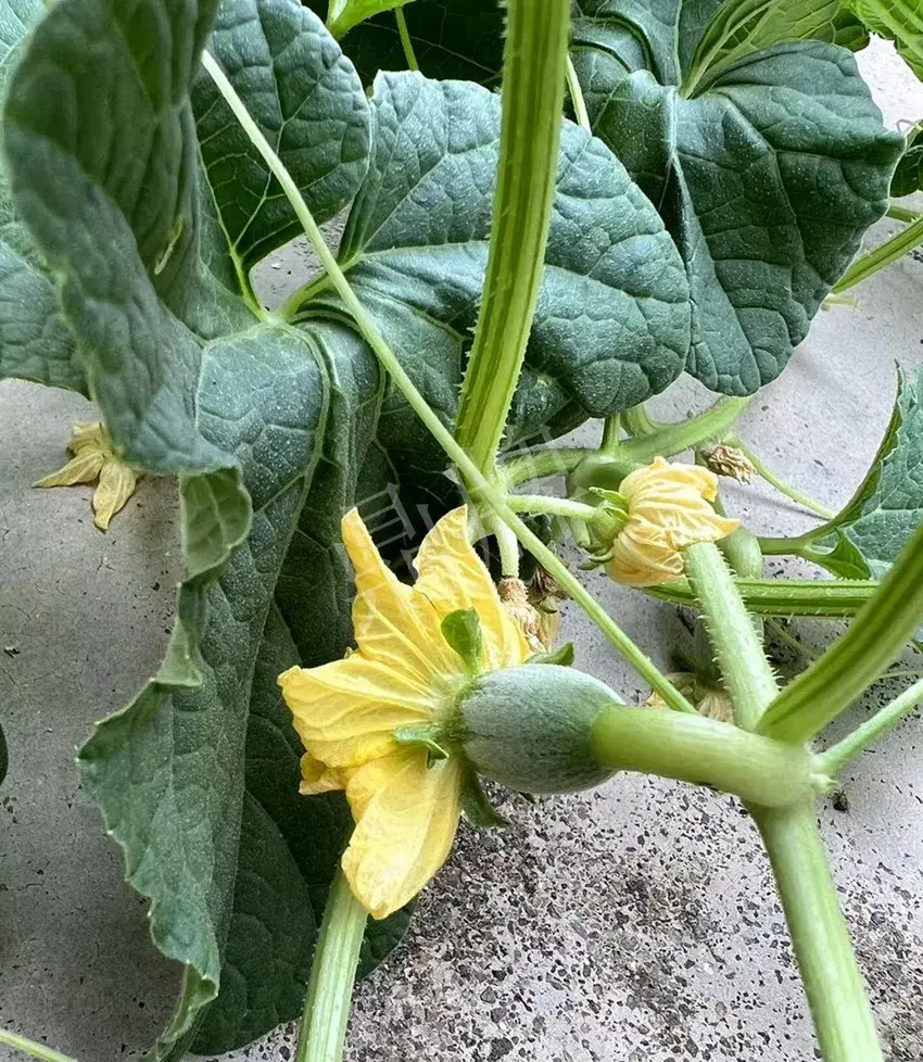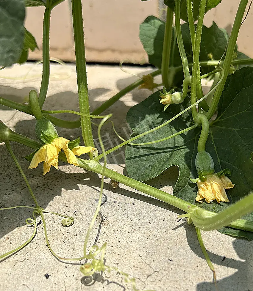 今日請各位看看本公司科研人員做的一個(gè)奇葩試驗(yàn)——在特高溫的條件下,讓甜瓜苗在水泥板上生長。