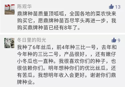 被認(rèn)可的感覺真的很欣慰!我們一直在努力,就是為了能夠給大家提供優(yōu)質(zhì)的種子,希望瓜農(nóng)、菜農(nóng)多賺錢。