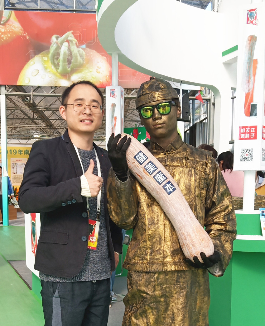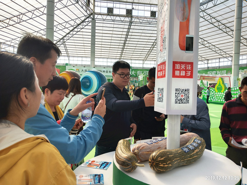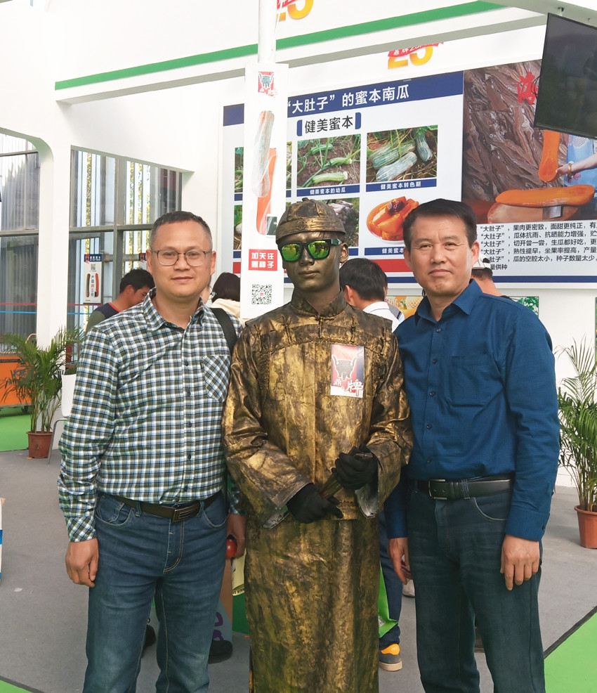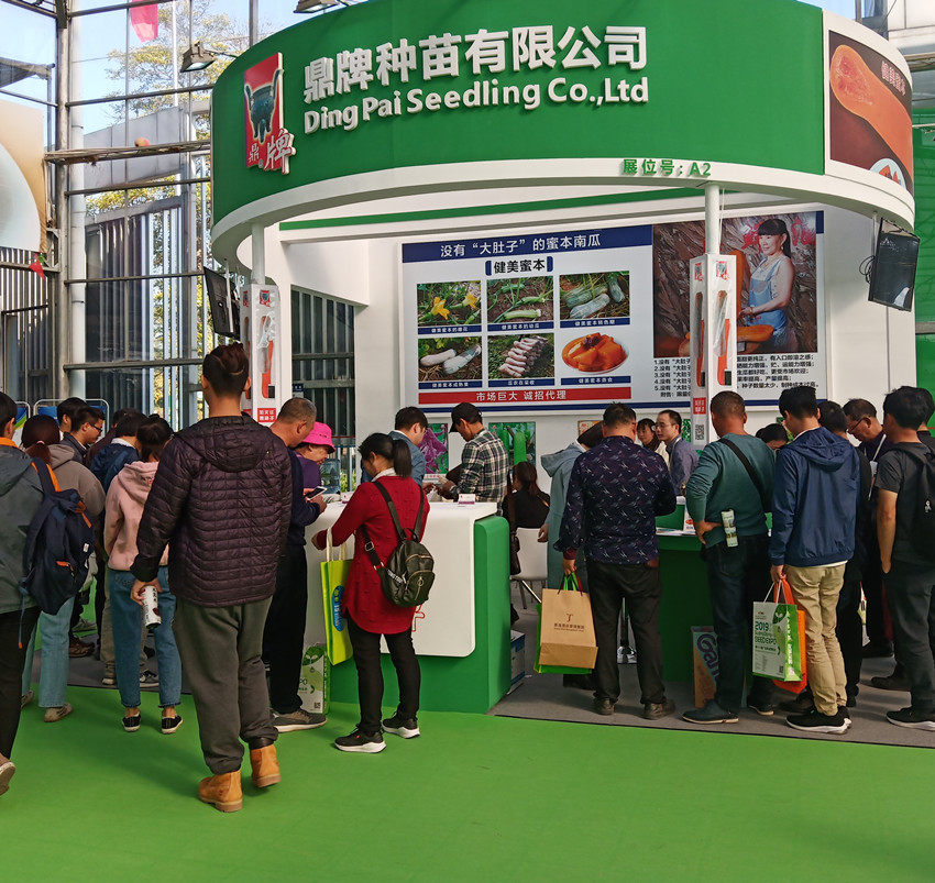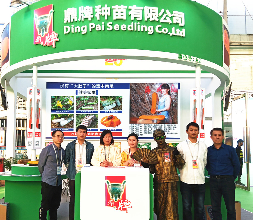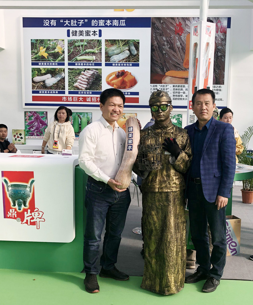 活動現(xiàn)場,鼎牌展位(A2)在展示大廳脫穎而出。客商們走到展臺前紛紛停下腳步,被鼎牌獨創(chuàng)的“沒有大肚子的健美蜜本南瓜”所吸引。