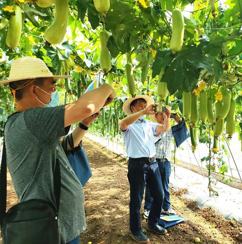 3位專家有條不紊,先后對苦瓜、絲瓜、南瓜進行了初評。在評選中,經(jīng)常展開討論,各抒己見。在遇到表現(xiàn)好的品種時,還忍不住拍照和記錄。