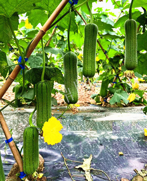 三倍體硬果絲瓜,可增產(chǎn)1倍。早熟,中棒,因坐果特多,果形、果色太美, 客戶建議改名為硬果太美。已申請國家新品種保護(hù)。用種:10~13袋/畝。