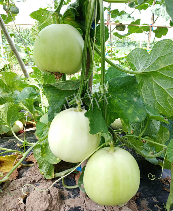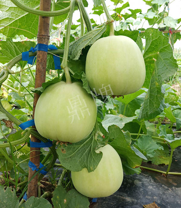 抗高溫能力強(qiáng),果皮、果肉乳白,果肉厚實(shí)、密致,皮脆肉酥,甜度高達(dá)19度;單果重600g左右。爬地1~2袋/畝、吊蔓5袋/畝。